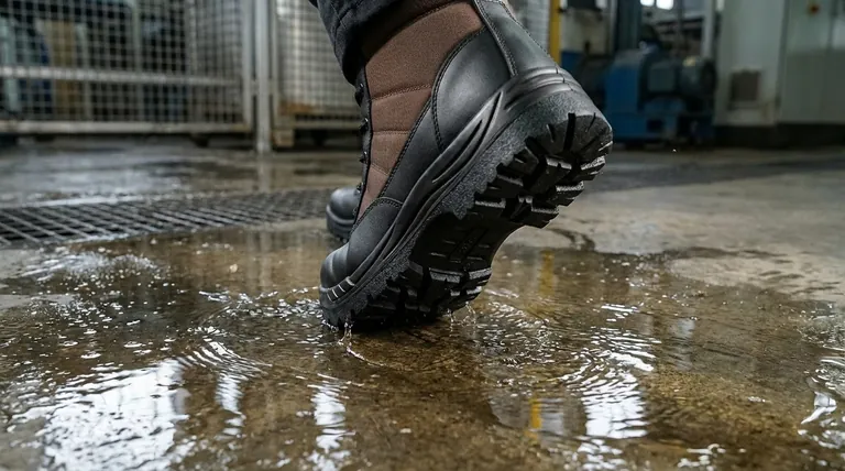 Der Begriff "rutschfest" ist keine universelle Sicherheitsgarantie. Echte Traktion ergibt sich aus der richtigen Abstimmung des Außensohlenmaterials, des Profilmusters und der spezifischen Designmerkmale des Stiefels auf die einzigartigen Gefahren Ihrer Arbeitsumgebung, sei es Wasser, Öl oder Eis.
