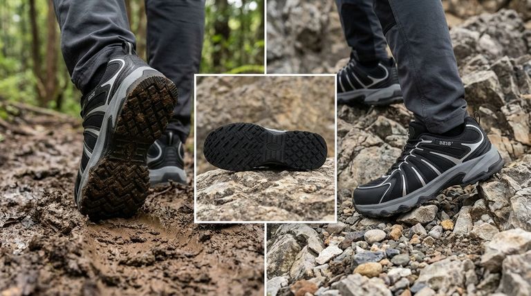 Die Sohlenhaftung ist die grundlegende Schnittstelle zwischen Ihnen und dem Weg und bestimmt direkt Ihre Stabilität, Sicherheit und Energieeffizienz. Auf Oberflächenebene bestimmt die Haftungskonfiguration die Traktion auf bestimmten Oberflächen: ausgeprägte Kerben und breite Sohlen sind darauf ausgelegt, in weichen Schlamm einzudringen, während flache Stollen eine überlegene Kontaktfläche für Reibung auf hartem, felsigem Gelände bieten.