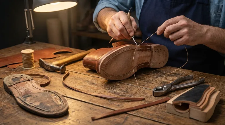 Dies ist der wichtigste Faktor für die Langlebigkeit. Wenn die Laufsohle durch Gebrauch abgenutzt ist, kann ein Schuster einfach den äußeren Sohlenstich durchtrennen und eine brandneue Sohle am vorhandenen Rahmen befestigen. Die Hauptstruktur des Schuhs, die durch die ursprüngliche Innennaht zusammengehalten wird, wird nie beeinträchtigt. Dies ermöglicht mehrere Neubesohlungen und verlängert die Lebensdauer des Schuhs von Jahren auf Jahrzehnte.