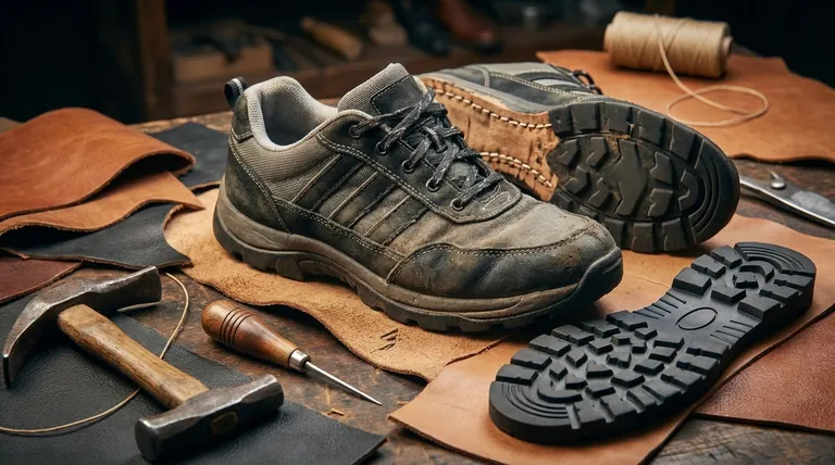Die ursprüngliche, komplexere Naht, die das Obermaterial mit dem Rahmen verbindet, bleibt unberührt. Das bedeutet, dass Sie die am stärksten beanspruchte Komponente des Schuhs ersetzen können, ohne jemals seine strukturelle Integrität zu beeinträchtigen.