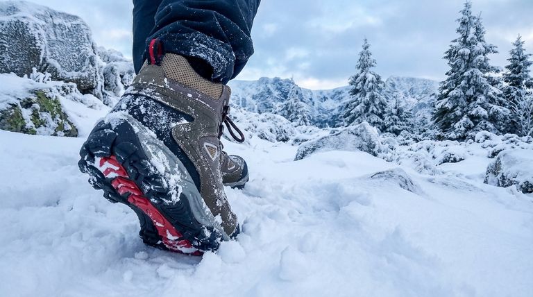 Die Navigation im Wintergelände erfordert spezielle Sohlen. Schneestiefel verwenden flexible Sohlen mit tiefen Profilen. Dieses Design gräbt sich in Schnee und Eis ein und bietet wesentliche Traktion und verhindert Ausrutschen. Zusätzlich ist oft eine gepolsterte Zwischensohle enthalten, um bei hartem, gefrorenem Boden Stoßdämpfung zu bieten.