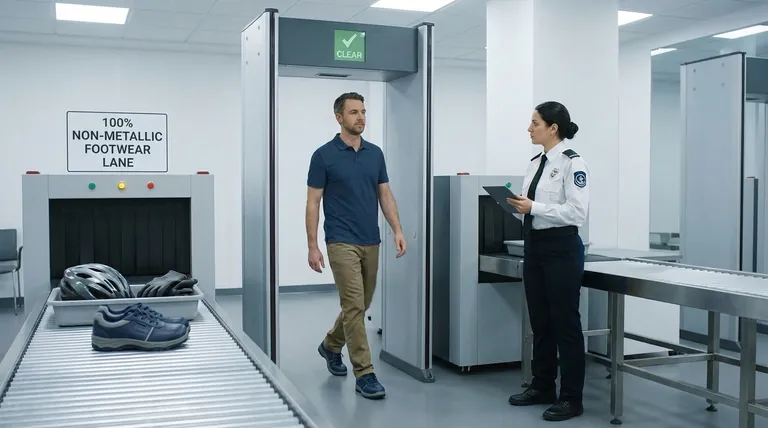 Aus diesem Grund müssen Arbeitnehmer in den strengsten Sicherheitsumgebungen nach Schuhen suchen, die ausdrücklich als "100 % nichtmetallisch" oder "metallfrei" vermarktet werden. Diese Zertifizierung stellt sicher, dass jede einzelne Komponente, von der Zehenkappe über die Feder bis hin zu den Ösen, keinen Detektor auslöst.